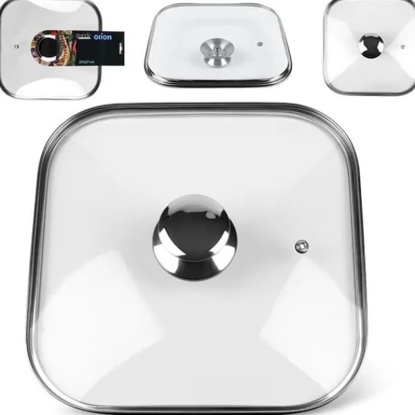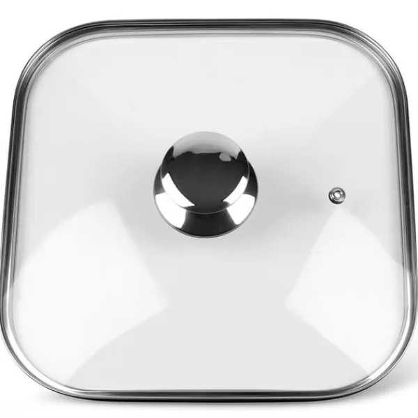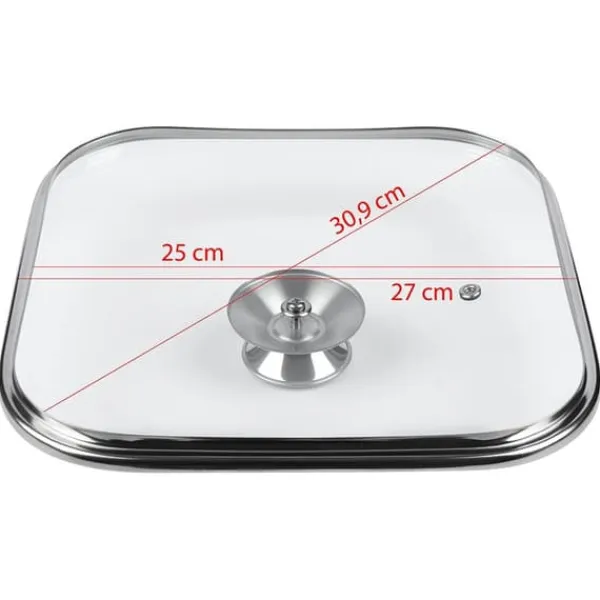 ✅ UNIVERSAL – Varmebestandigt glaslåg med en stålknap og -kant. Låget har en firkantet form. Lågets ydre mål er 27 x 27 cm og de indre mål 25 x 25 cm. Låget kan bruges til firkantede gryder, stegepander og kasseroller.
