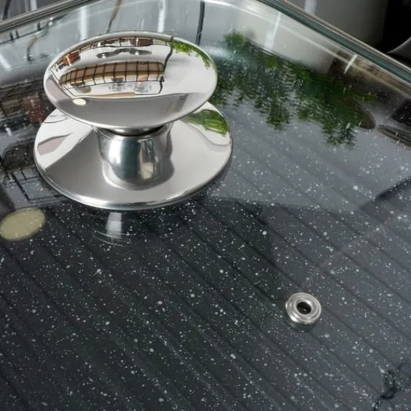 ✅ GLAS – Lavet af varmebestandigt transparent glas, og håndtaget og kanten er lavet af sølvfarvet rustfrit stål. Lågets transparente farve giver os mulighed for at kontrollere tilberedningsprocessen uden at skulle løfte låget.