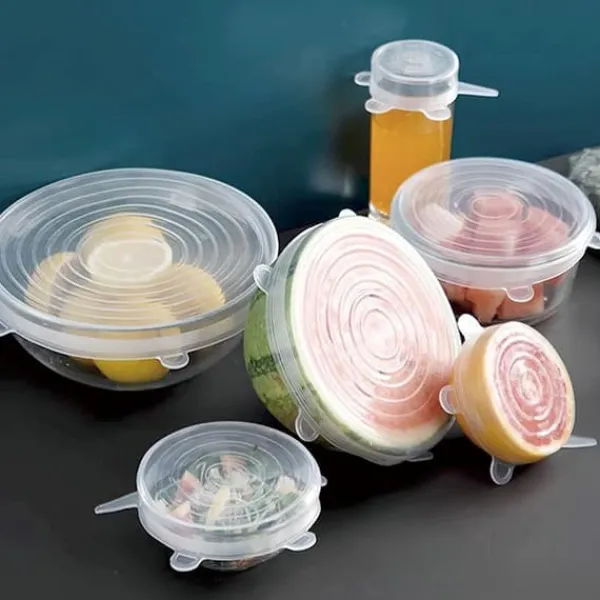 Sæt med 6 strækbare silikone madopbevaringslåg