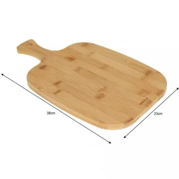Det økologiske materiale, der bruges til at fremstille pladen, sikrer høj holdbarhed, soliditet og æstetisk udseende. Bambustræ er hårdt (hårdere end eg), mere modstandsdygtigt over for slid og skader og sløver samtidig ikke knive. Det tværgående arrangement af komprimeret bambusgræs forhindrer overdreven absorption af saft og fremskynder tørringen af brædderne. Specifikation: – Naturlig bambus farve – Bambus skærebræt med håndtag og rundt hul til nem ophæng i køkkenet – Solid og holdbar – Slidbestandig – Let at vaske, kun håndvask – Mål: 38 x 23 x 1,5 cm
