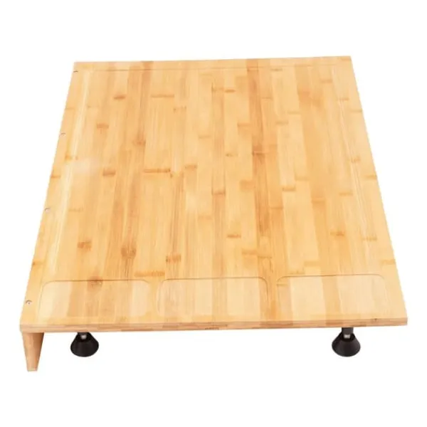Alsidig bambus-komfurafdækning og skærebrætDenne robuste afdækning beskytter kogepladen og fungerer samtidig som et rummeligt skære-/serveringsbræt. Den rektangulære form, et retvinklet stop og fire aftagelige fødder giver sikker stabilitet på forskellige komfurer og kogeplader.