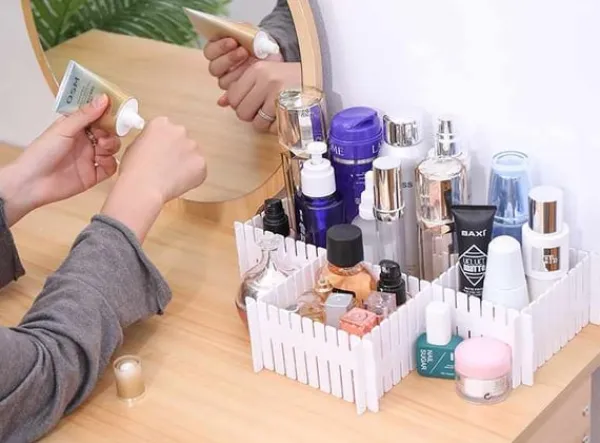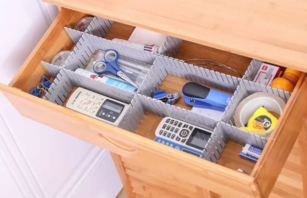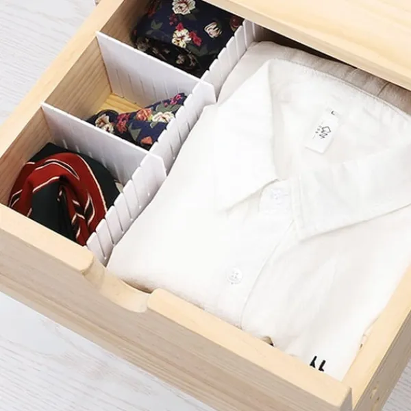 Hvis du f.eks. har smykker og ure, der er skrøbelige, kan dette produkt hjælpe. Den deler en større skuffe op i mindre dele, hvor man kan adskille mindre ting i forskellige rum. Du kan også klippe den efter dit behov, hvis du f.eks. har slips, der er længere, og undertøj, der er bredere.