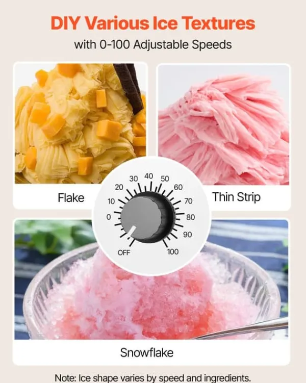 0-100 trinløs hastighed for præcis tekstur Finjustér konsistensen fra ultralet snefnug til tynde strimler eller flager. Den brede justering gør det nemt at ramme den perfekte mundfølelse til enhver opskrift eller topping.