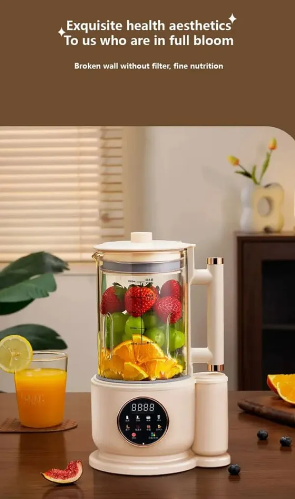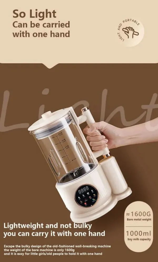Kraftfuld 1,5 l plante‑mælk & smoothie‑maskine i hvid Lav frisk plantedrik, cremede supper og silkebløde smoothies derhjemme. Med LCD‑touch, støjsvag drift og 12‑bladet kniv i rustfrit stål får du fin tekstur, høj udbytte og nem betjening i hverdagen.