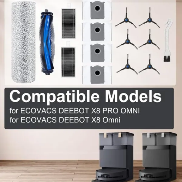 Forbedret rengøringsydelse: Dette tilbehørssæt er designet til at forbedre rengøringsevnerne i din Ecovacs Deebot X8 Pro Omni eller X8 Omni støvsuger. De medfølgende komponenter arbejder synergistisk for at give en mere grundig og effektiv rengøringsoplevelse, der sikrer, at dine gulve er pletfri og fri for støv, snavs og allergener. Regelmæssig udskiftning af dette tilbehør opretholder optimal ydeevne.