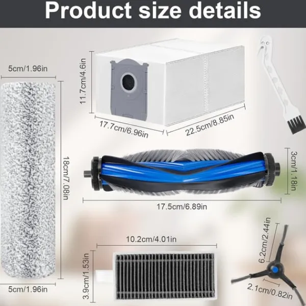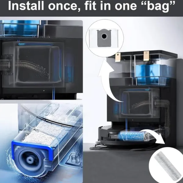 Nem installation: Hver komponent i dette tilbehørssæt er designet til nem installation og udskiftning. Du kan hurtigt og ubesværet udskifte de gamle dele med de nye, hvilket minimerer nedetiden og sikrer, at din Ecovacs Deebot X8 Pro Omni/X8 Omni altid er klar til at tackle dine rengøringsbehov. Det brugervenlige design giver mulighed for problemfri vedligeholdelse, selv for dem, der ikke er bekendt med vedligeholdelse af støvsugere.