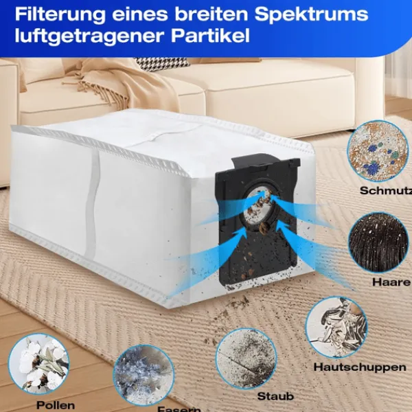 Moppeklude og støvsugerposer: Tilbehørssættet indeholder også moppepuder, til at tørre gulvene skinnende rene, og støvsugerposer.