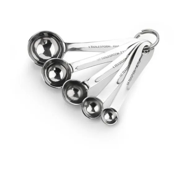 Måleskeer med 5 skeer. Fra 1 spsk ned til 1/4 tsk.