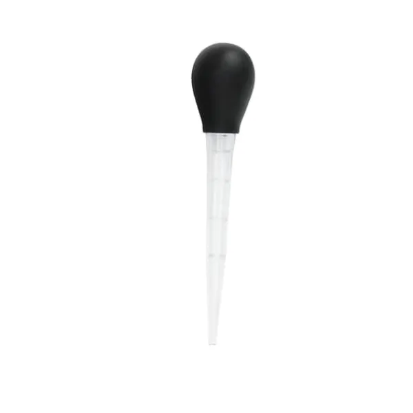 Øsepipette af plastik og silikone med tilhørende rengøringsbørste. Samlet længde: 29 cm. Perfekt til øse af stege og fjerkræ.