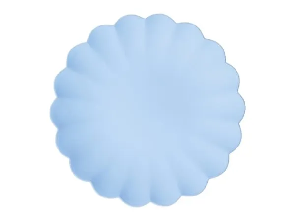 Plastiktallerkener med flæse i lyseblå, mål ca. 22 x 22 cm.