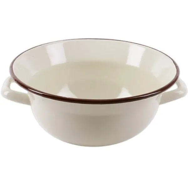 Emaljeret køkkenskål med greb, i retrostil. Fremstillet af holdbare materialer. Det sikrer behagelig blanding, æltning og tilberedning af en række forskellige retter. Den kan bruges til at servere retter, snacks eller salater direkte på bordet. Det unikke design vil gøre skålen til en unik køkkendekoration. Hvis du vil udstille den i spisestuen eller køkkenet, kan du opbevare frugt i den. Emaljeret køkkengrej kan have produktionsfejl, der er naturlige for denne type køkkengrej: buler, asymmetriske print osv. Disse påvirker ikke kvaliteten af produktet eller de retter, der tilberedes; de fremhæver blot den traditionelle tilberedningsmetode.Originalt produkt fra det tjekkiske mærke Orion.Fremstillet i overensstemmelse med europæiske standarder.