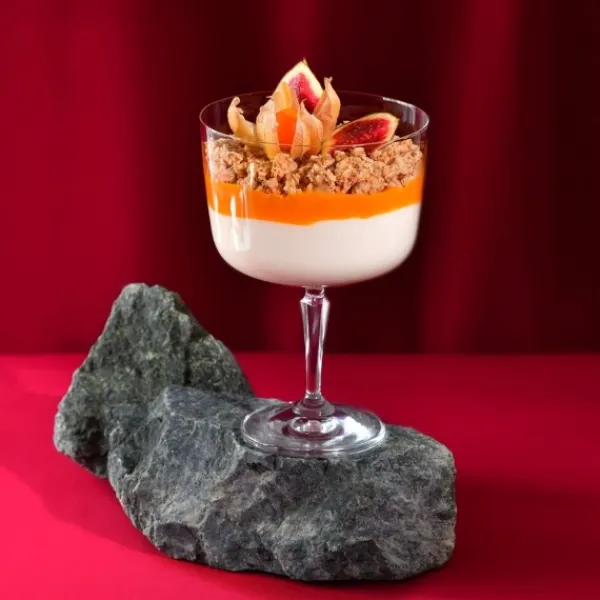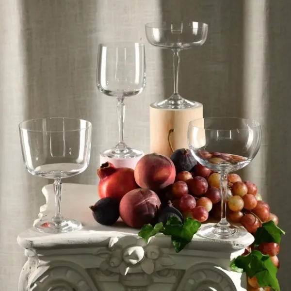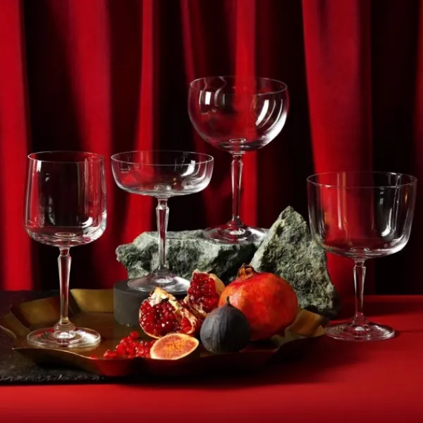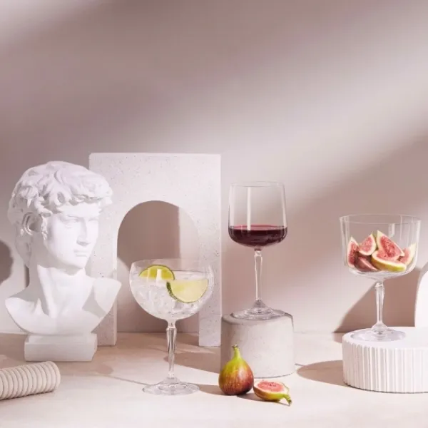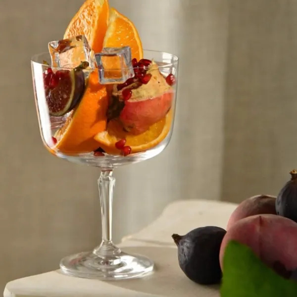 Skålenes høje base minimerer varmeoverførsel fra hånden, hvilket er perfekt, når man serverer kolde desserter. Den generøse volumen på 570 ml gør det nemt at skabe fantasifulde og alsidige arrangementer – både søde og salte. Den dekorative, strukturerede base tilføjer også et elegant touch til borddækningen.