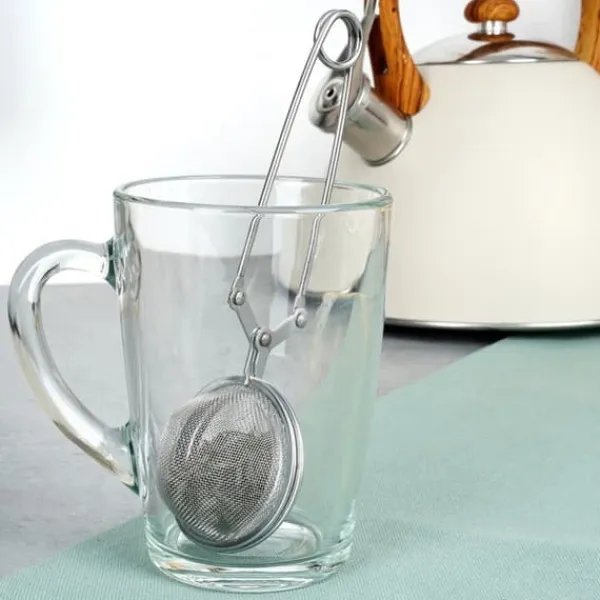 - En praktisk te-si– En køkkensi udstyret med tang for nem åbning og lukning. Sien har en diameter på 5 cm og en samlet længde på 16 cm. Den er perfekt til brug i en kande eller et stort krus.