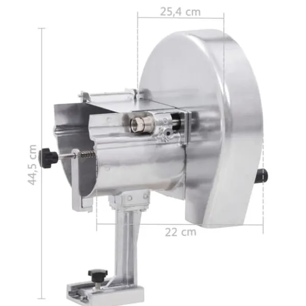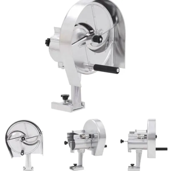 Grøntsagsskæreren har en enkel og robust aluminiumkonstruktion, og den har skarpe klinger i rustfrit stål for høj effektivitet og holdbarhed. Skæretykkelsen er justerbar i intervallet fra 0,3 mm til 8 mm. Derudover kan grøntsagsskæreren let og hurtigt fastgøres til en arbejdsplade med de medfølgende monteringsmaterialer. Produktet er let at samle.