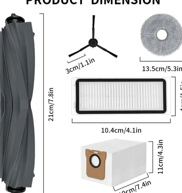Tilbehørssæt passer til Dreame L20 Ultra/L20 Ultra Komplet robotstøvsuger. Indeholder reservedele såsom hovedbørster, sidebørster, støvsugerfiltre, støvsugerposer og moppepuder.