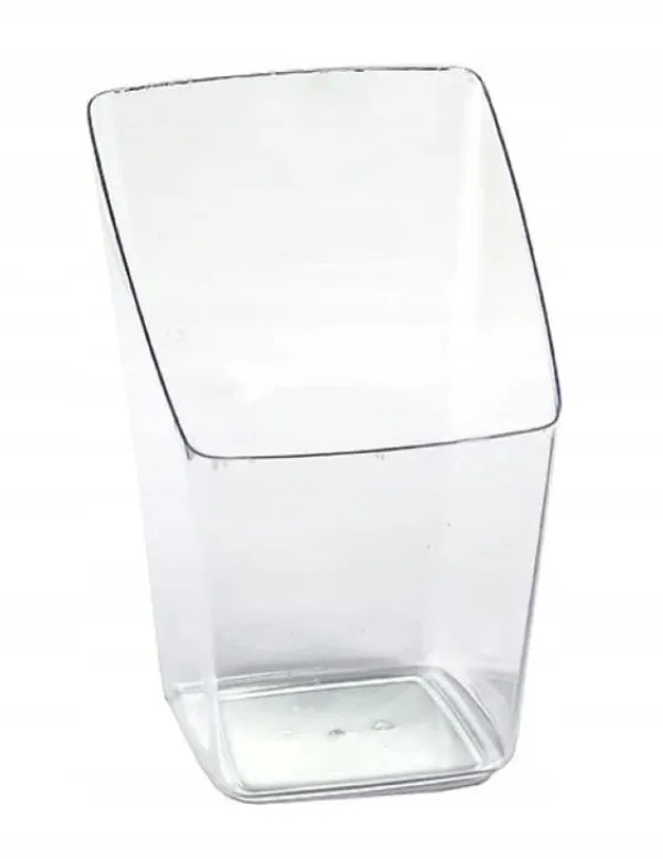 - Beholderne er lavet af slidstærkt PS-plast og er ikke kun modstandsdygtige over for revner, men også over for høje temperaturer. Dette gør dem velegnede til servering af både varme og kolde snacks, både i cateringvirksomheder og i hjemmekøkkenet.