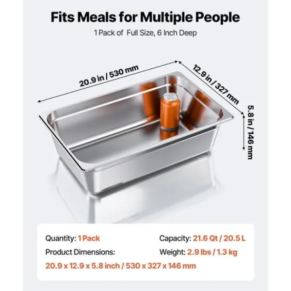 Rigelig madkapacitet: Med en kapacitet på 20,5 liter / 82 quarts kan denne damppande af rustfrit stål i størrelse 1/1 (15 cm dyb, 1-pak) imødekomme dine madlavning og opbevaringsbehov hver dag. Perfekt til kød, grøntsager, frugt og is.