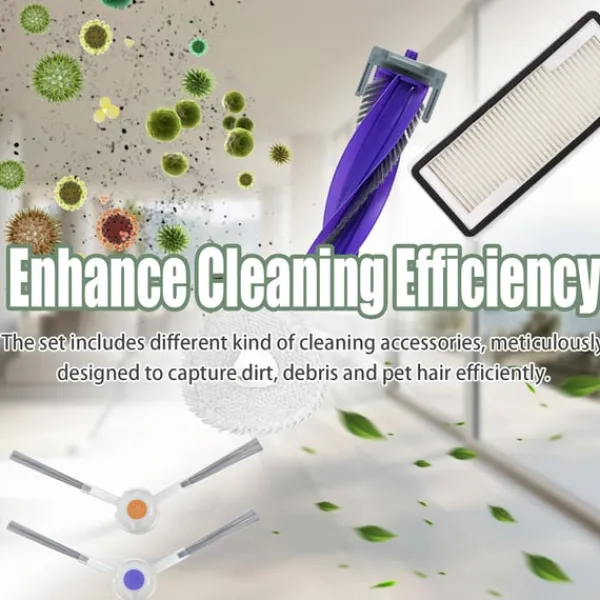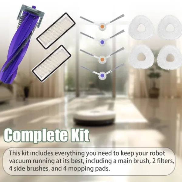 Komplet sæt: Dette sæt indeholder alt hvad du behøver for at holde din robotstøvsuger i top stand, inklusive en hovedbørste, 2 filtre, 4 sidebørster og 4 moppepuder.