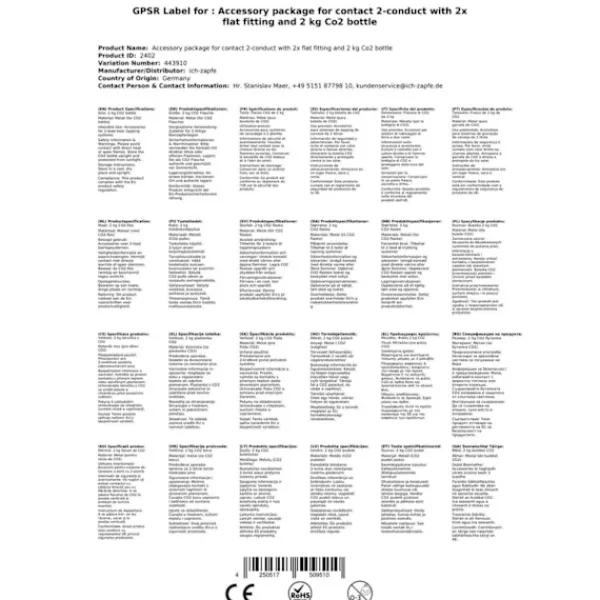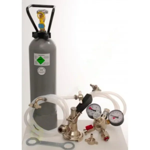 Tilbehørpakke til Kontakt 2 linjer med 2x type A kobling til fadøl og 2. kg CO2 flaske bestående af: – Trykregulator 2 -leitig CO2 for øl dispenser 3bar – CO2 – flaske, 2,0 kg – 2x komplet 2x CO2 slange, 1,5 m – 2x øl slange John Gæst – 3/8 og 5/8 skrue-on stik 1,50 m – helt færdig – kulsyreholdige nøgle fangenskab – 2x Kobling til fadøl, Keg – lukning, type A, øverste udgang – Keller rømning