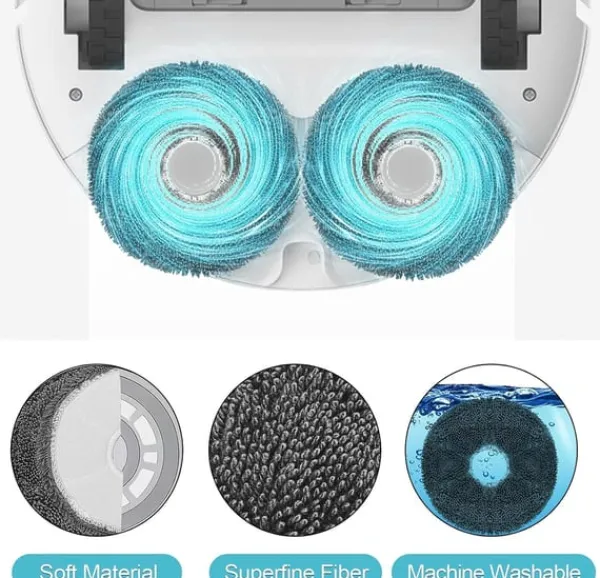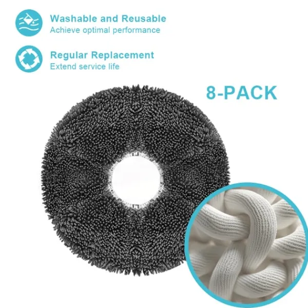 Vaskbare mopper: Tilbehørssættet indeholder også moppepuder til at tørre gulvene skinnende rene.