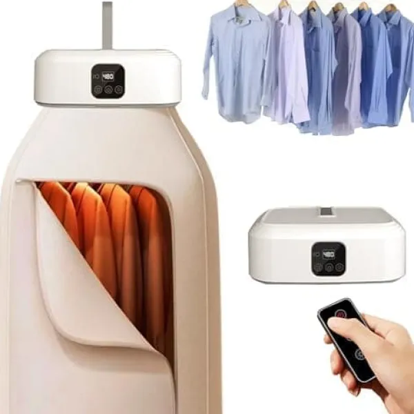 360° hurtig varmlufttørring: Denne bærbare 360° varmlufttørrer, med varmluftcirkulation og konvektion, holder dit tøj luftigt og blødt. Den varmer hurtigt op på 5 minutter og giver varmt og behageligt tøj i tide, når barnet kommer ud af badet, hvilket forhindrer barnet i at blive forkølet i koldt vejr. Det kan også hjælpe dig med at tage varmt og behageligt tøj på til tiden i regntiden.