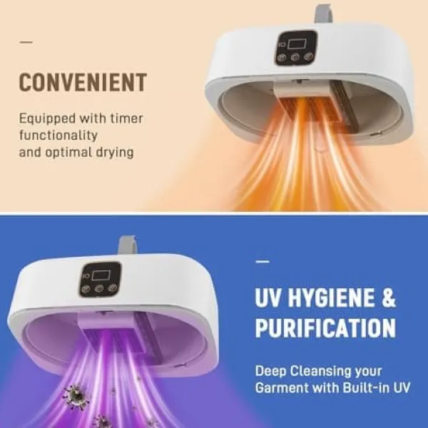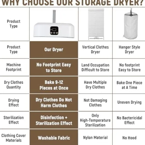 60° dybderengøring med UV-blåt lys: Denne bærbare tørretumbler bruger PTC keramisk opvarmningsteknologi og 60° automatisk temperaturkontrol for at spare energi og elektricitet. At eje dette produkt betyder, at du ikke behøver at bruge flere penge på vasketøj.