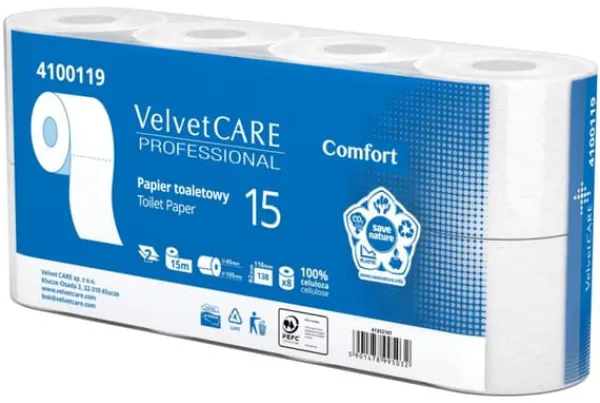 Dette 2-lags toiletpapir er lavet af 100% cellulose, hvilket sikrer den højeste kvalitet og holdbarhed. Hver rulle er 92 mm høj og 108 mm i diameter, og rullen er hele 15 meter lang! Bestil nu!