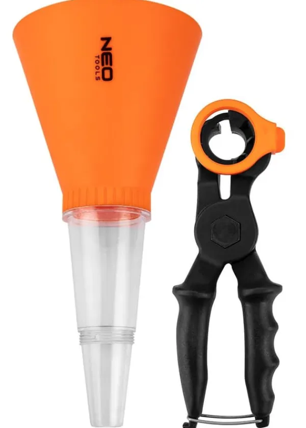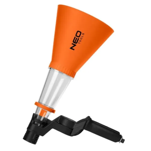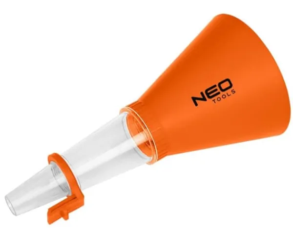 TEKNISKE DATA: Bruttomål (bredde x højde x længde): 21,80 x 13,30 x 38,00 cm Vægt: 0,55 kg Mærke: NEO TOOLS PKWiU: 22.29.23.0 Diameter: 125 mm Samlet produktlængde: 250 mm Antal dele i sættet: 1 stk. Produktmateriale: plastik Universaltragt 125 mm, med monteringsbeslag 10-808 fra NEO TOOLS er et produkt med en dybde på 250 mm og en diameter på 125 mm. Den er lavet af plastik, hvilket forhindrer spild og er uvurderlig i blandt andet bilværksteder. Takket være den innovative klemme holder den tragten i en position, der giver brugeren mulighed for at hælde væsken med begge hænder. Desuden giver tragtens gennemsigtige element større kontrol under dosering, hvilket påvirker komforten og bekvemmeligheden ved brug. **