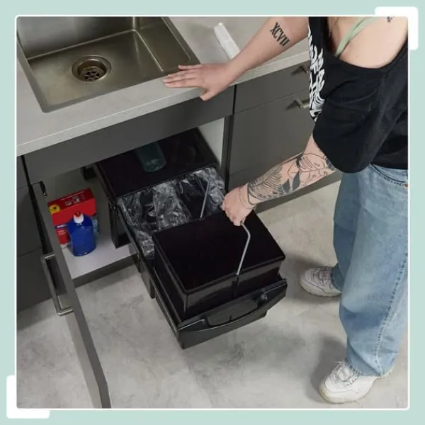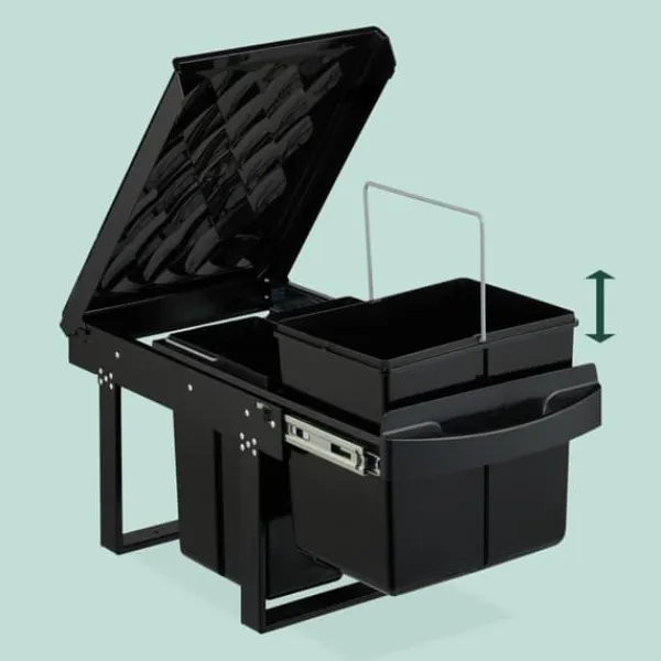 Denne udtrækkelige affaldsspand tilbyder en praktisk løsning til effektiv affaldssortering og pladsbesparende installation under din køkkenvask. Dens teleskopiske skinne sikrer en jævn, fuld udtrækning for nem adgang, mens det vippende låg hjælper med at holde lugte inde og fungerer som holder til affaldsposer og redskaber. Spanden er nem at montere og leveres med alt nødvendigt monteringsmateriale og illustrerede instruktioner.