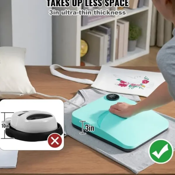 Gør dig klar til at få mest muligt ud af din varmepresse! Denne maskine kan bruges til strygning eller varmeoverførselstryk, som opvarmes hurtigere og mere ensartet end hjemmestrygejernet. Udstyret med en sikkerhedsbase og varmeisoleringsmaskine for at beskytte dig til enhver tid. Kom nu, saml alt tøj ved siden af dig, og prøv det!