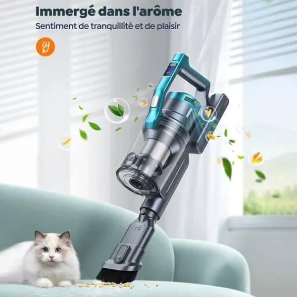 Maksimal bekvemmelighed Teleskoprør i aluminium til korrekt arbejdshøjde, ét-klik tømning og vægbeslag for nem opbevaring. Integreret duftdiffuser frisker luften op under støvsugning.