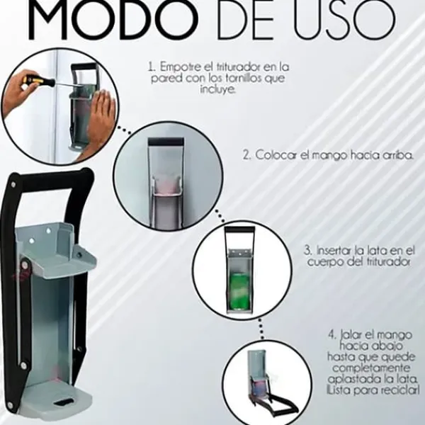Desuden er installationsprocessen hurtig og nem. Denne vægmonterede dåseknuser kan nemt monteres på enhver hård overflade såsom en væg, bord eller bordplade.