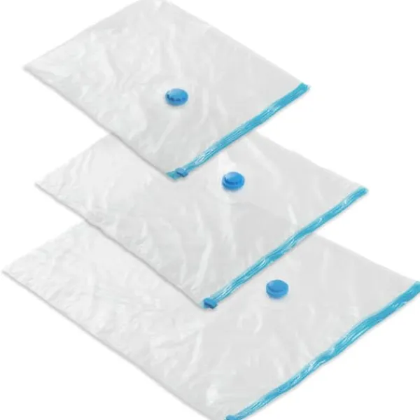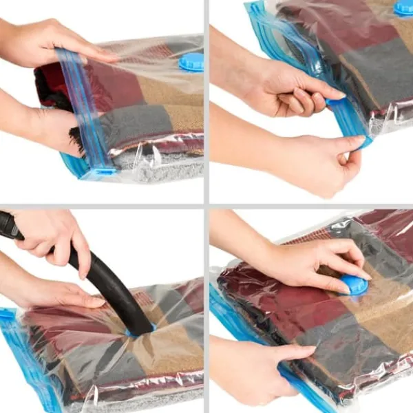 Det er helt vildt, op til 75% pladsbesparelse med de nye vakuumposer fra tectake. Vakuumposerne i tre forskellige størrelser er ideelle til opbevaring af ting som fx. Sengetøj, sommer- og vintertøj, skidragter, dyner, puder, tøjdyr og meget mere. Om derhjemme eller på rejse. Vakuumpakkerne beskytter mod snavs, lugt, fugt, skadedyr og andre ydre påvirkninger. Og desuden er de genanvendelige. Når man har påfyldt posen, som let forgår vha. en meget stor åbning, kan man suge luften ud med en almindelig støvsuger. Dine ting er forsvarligt pakket ind takket være den robuste, tandløse lynlås.