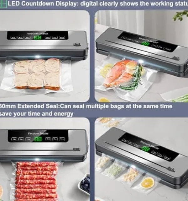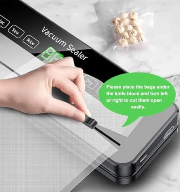 【6-i-1 lukketilstand, indbygget fræser og synligt LED digitalt nedtællingsdisplay】 (1): Et synligt LED digitalt nedtællingsdisplay kan lette visningen af maskinens arbejdsstatus: (2): Indbygget fræser: Skærer nemt posen af, hvilket svarer til at have en ekstra saks for nem klipning. Du kan skære din vakuumpose til den ønskede størrelse på få sekunder. (3): Denne effektive og bekvemme forseglingstilstand med fødevaregodkendte, tørre, våde og supervåde forseglingstilstande at vælge imellem, og en kombination af forseglings- og vakuumforseglingsmetoder for at give din mad den bedst mulige konservering efter dine præferencer.