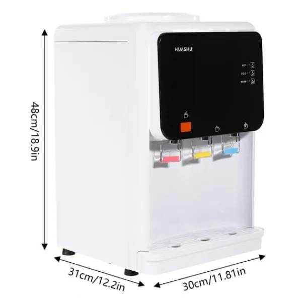 Denne hvide bordmodel leverer tre temperaturer – kold, varm og hed – så du kan drikke direkte, brygge te eller lave kaffe uden besvær. 500 W opvarmning giver ca. 600 ml på 8 minutter, mens 75 W køling leverer afkølet vand effektivt.