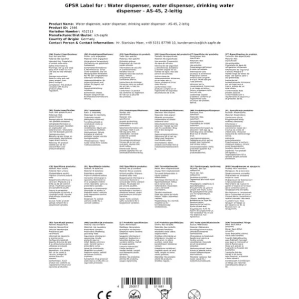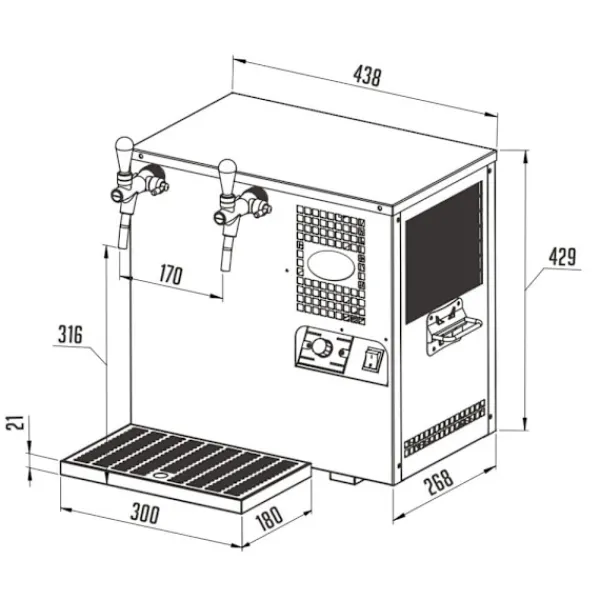 Sodavandsmaskine, danskvandsmaskine, vanddispenser, drikkevandskøler, carbonator – AS-45, 2 linier Karakteristika •Produktion af afkølet sodavand ved at blande drikkevand og CO₂ •Giver 40-50 liter velafkølet sodavand på en time •Kan anvendes på kontoret, fabrikken eller i hjemmet •Køleteknologi er 45 % mere effektivt end elforbruget •Lavet af højkvalitetsstål •Nem tapning takket være rustfri vandhaner •Rustfrit ståldrypbakke sikrer hygiejnisk komfort •Materialer opfylder de højeste hygiejnestandarder AS-45-vanddispenseren er en professionel enhed til fremstilling af afkølet sodavand. Blanding af drikkevand og CO₂ giver 40-50 liter velafkølet sodavand på en time. Enheden kan anvendes på kontoret, fabrikken eller i hjemmet. Køleteknologien er 45 % mere effektivt end elforbruget, hvilket er godt for miljøet og din pengepung. AS-45-vanddispenseren er lavet af højkvalitetsstål og er designet til at være holdbar i lang tid. Nem tapning er garanteret takket være rustfri vandhaner af høj kvalitet. En drypbakke i rustfrit stål sikrer hygiejnisk komfort, og materialerne opfylder de højeste hygiejnestandarder. Med denne sodavandsmaskine kan du nyde velafkølet sodavand hvor som helst og når som helst, uden at skulle bekymre dig om at løbe tør for sodavand. Bestil denne fantastiske sodavandsmaskine, danskvandsmaskine, vanddispenser, drikkevandskøler og carbonator, og oplev komforten og luksusen ved frisk kølet drikkevand, sodavand og andre drikkevarer.