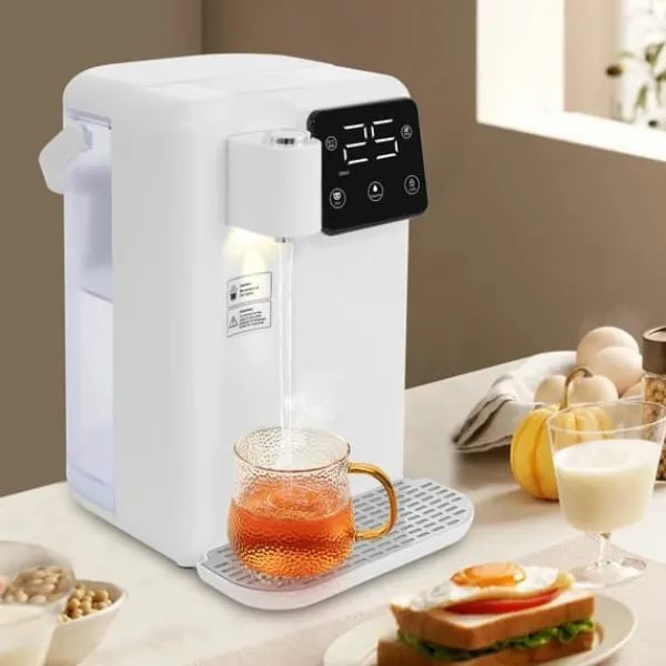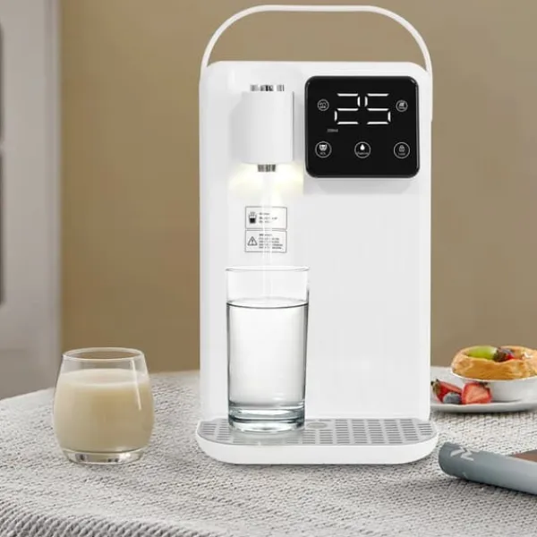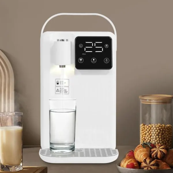 Vand- og drikkedispenser med præcis temperatur – Hvid Moderne bordmodel i hvid med LED-display, aktivt kulfilter og kraftig 2200W opvarmning. Ideel til te, kaffe, modermælkserstatning eller sojamælk. 3L beholder, tre mængder (200/330/500 ml) og temperatur fra 25–99℃ gør servering hurtig og nem i hjemmet eller på kontoret.