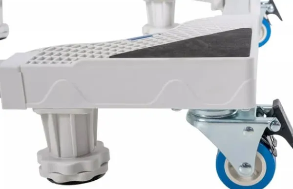With a load capacity of up to 350 kilograms, even heavier appliances can be safely placed on the steel and plastic base. Dark plastic protectors on the corners of the frame and under the legs prevent damage to both the washing machine and the floor.