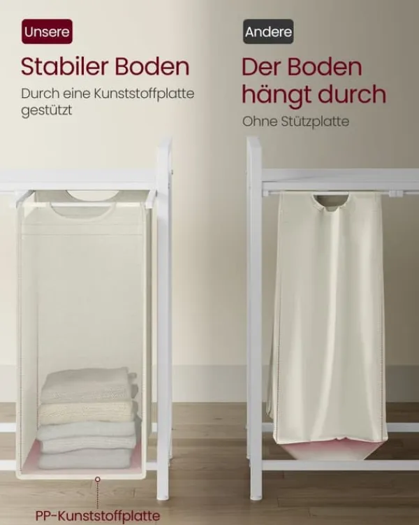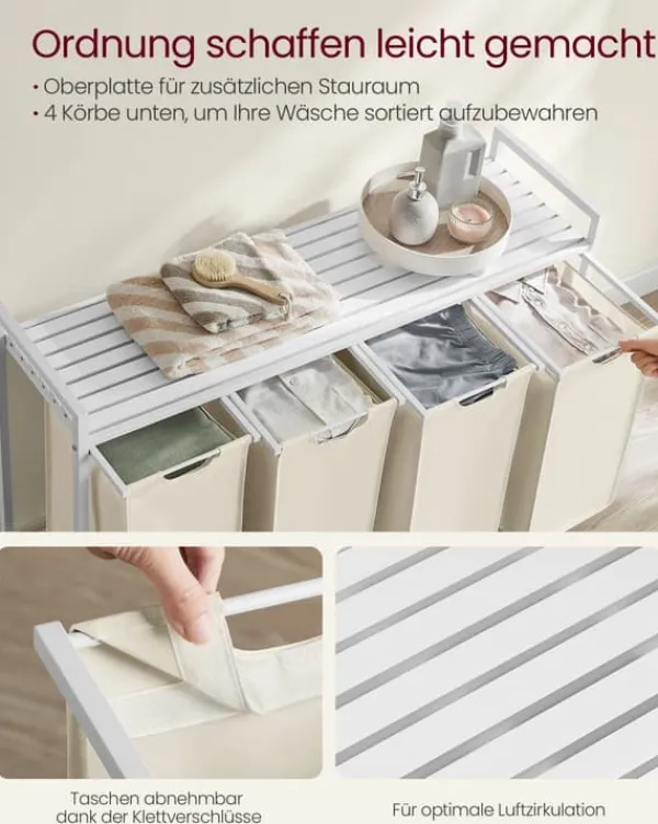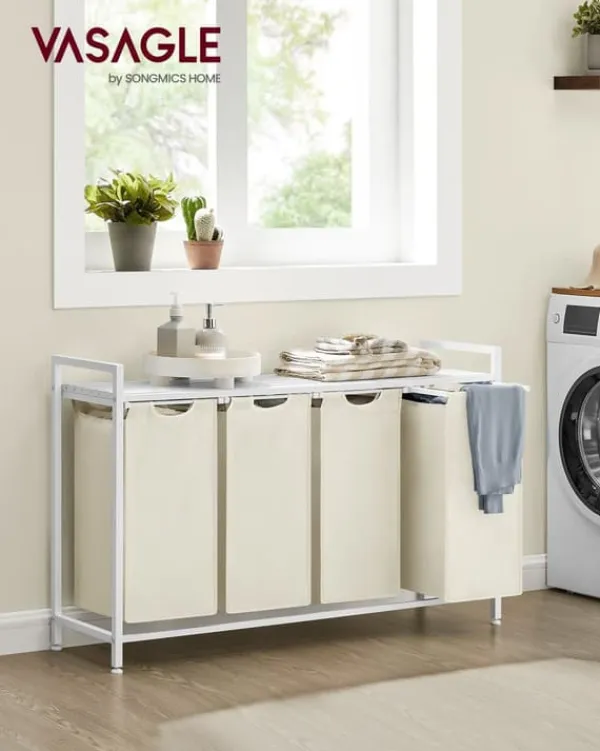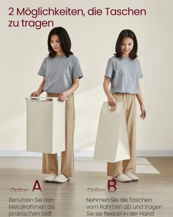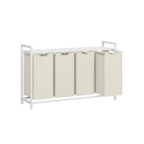 Denne vasketøjskurv har en robust metalramme med tre aftagelige poser i Oxford-stof, der giver praktisk sortering og opbevaring til dine vasketøjsbehov. Dens holdbare konstruktion og rummelige kapacitet gør den ideel til effektiv organisering af vasketøj samtidig med, at den bevarer et ryddeligt udseende.