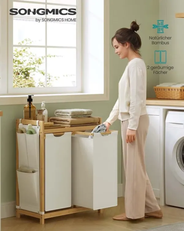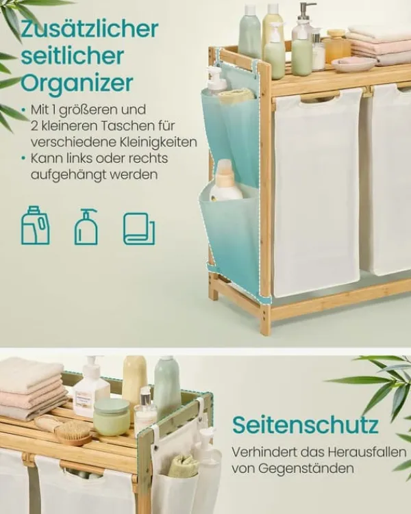 - Inkluderer vasketøjspose, små sidelommer og opbevaringshylde