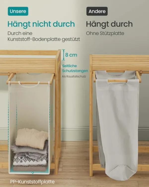 Denne vasketøjssorterer tilbyder en praktisk løsning til organisering og sortering af vasketøj med tre rummelige rum. Designet i bambus og med ekstra opbevaringsmuligheder hjælper den med at holde dit vaskerum ryddeligt og effektivt.