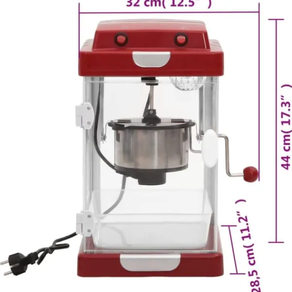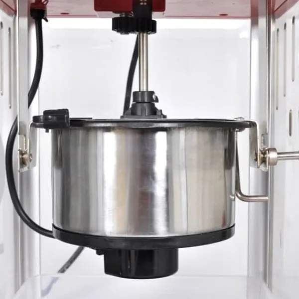 Denne popcornmaskine med sit stilfulde design bliver et hit til enhver fest! Den har en stor 2,5 oz rustfri stålkedel med indbygget omrøringssystem og springer op til 10 kopper popcorn pr. omgang