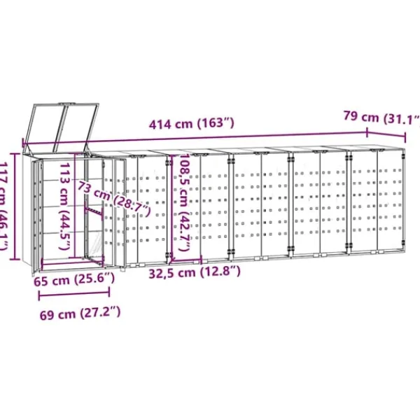 - God ventilation: Ventilationsåbningerne på panelerne fremmer luftcirkulationen, hvilket forhindrer lugt og holder dine skraldespande friske.