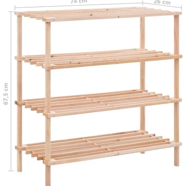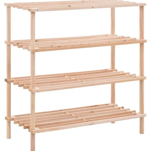 Denne skoreol i træ med 4 hylder holder dit fodtøj ryddeligt og pænt organiseret, så det ikke roder på gulvet. Den er perfekt at have stående ved hoveddøren eller andre steder, hvor du gerne vil holde styr på skoene.