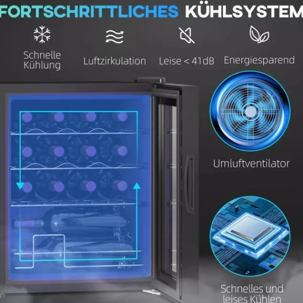 Sig farvel til rodede bordplader og vin ved forkert temperatur: HOMCOM vinkøleskabet køler dine foretrukne rødvine, hvidvine eller øl præcist og effektivt. Takket være glasdøren med UV-beskyttelse er dine flasker beskyttet mod lys, og den støjsvage drift sikrer aftener uden forstyrrelser. På trods af sin kompakte størrelse kan den rumme op til 16 flasker og er udstyret med aftagelige hylder, hvilket gør den til en elegant og nyttig tilføjelse til køkkenet, opholdsrummet eller hjemmebaren.