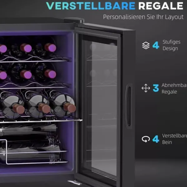 - ✔ Justerbare fødder på vinkøleskabet stabiliserer enheden på ujævne overflader