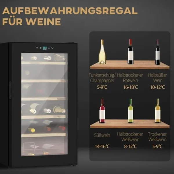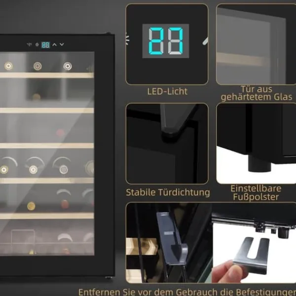 – Kompakt vinkøleskab: Ideel til stuen eller små rum, rummer 24 flasker (750 ml) på 6 udtagelige hylder