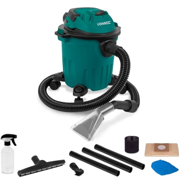 - VONROC Tæpperenser/støvsuger 1400W | Inkl. rengøringsmiddel og forskellige mundstykker (VC509AC)