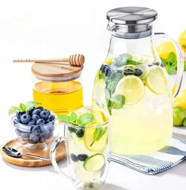Glaskanden er lavet af specielt varmebestandigt glas, der tåler høje temperaturer. I denne kande kan du tilberede kompot direkte på komfuret. Derudover holder kanden sig godt køligt, så du kan servere kold limonade. Toppen af kanden er dekoreret med et unikt låg i rustfrit stål, der understreger dens moderne design.