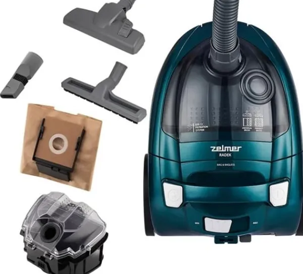 Zelmer ZVC031P Radek støvsuger med og uden pose (grøn) er en pålidelig og praktisk enhed, der vil være en perfekt tilføjelse til ethvert hjem. Takket være sit innovative design kombinerer den fordelene ved både støvsugere med og uden pose, hvilket giver enestående fleksibilitet og brugerkomfort.